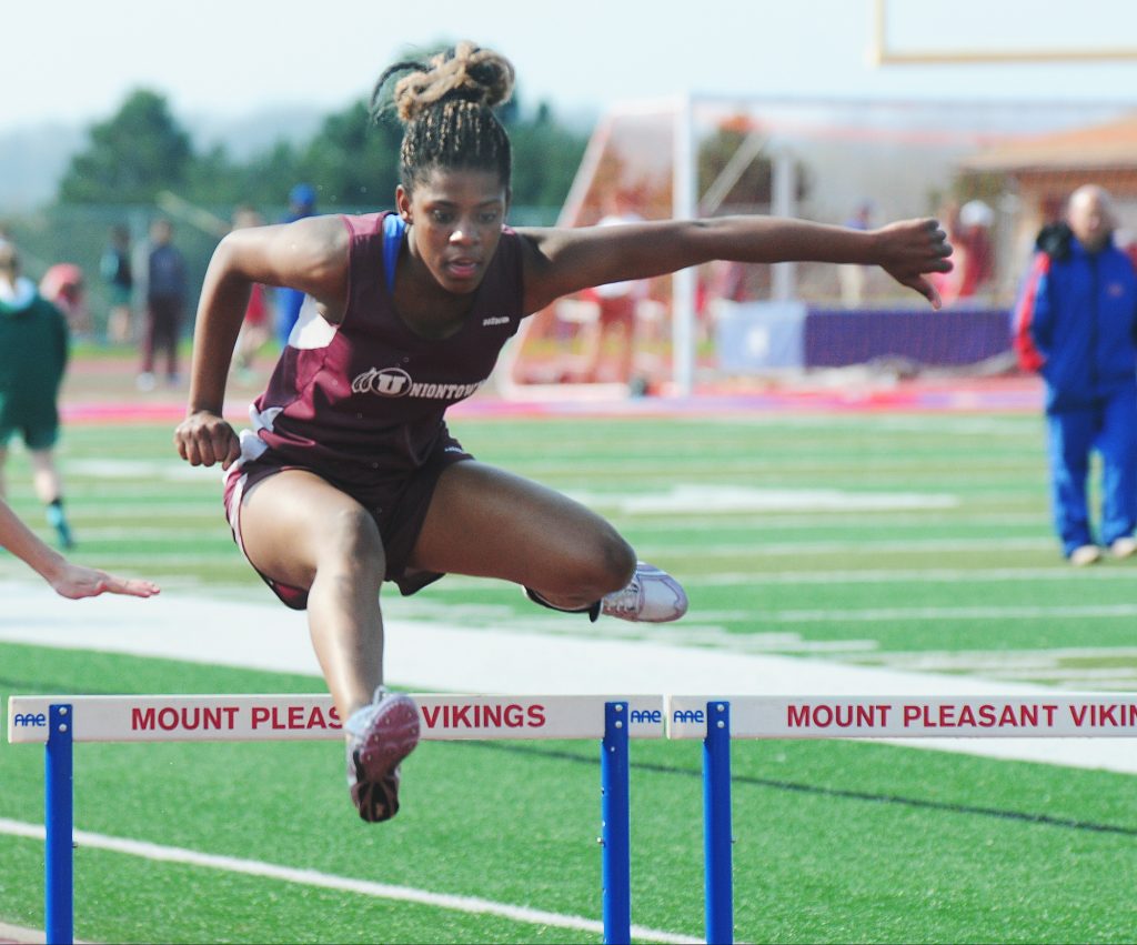 Katie Burgess was the lone Uniontown girl in the 3,200, but she came through with a first-place finish in 12:53.