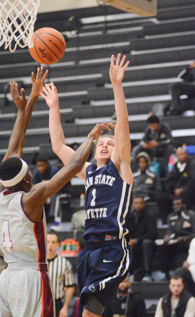 PENN STATE FAYETTE, THE EBERLY CAMPUS (16-12) — Spencer Perieff 2-6 0-0 4, Luke Williams 6-15 7-9 22, C.J. Gaddis 5-9 6-10 19, Dominick Jackson 7-16 8-12 22, Brandon Cunningham 6-12 4-4 17, Marvin Sidon 1-3 0-0 2, London Hoxie 5-12, 2-4 14, Anthony Bristol 1-6 0-0 2, Atrayo Matthews 0-0 0-0 0. 33-79 27-39 102.