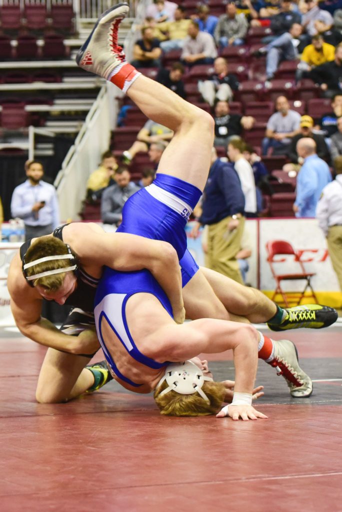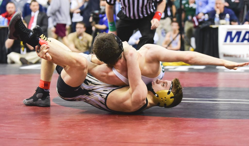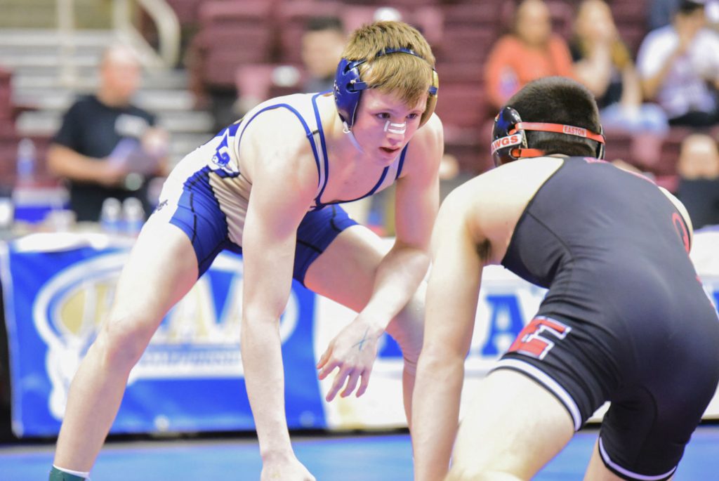 Derek Verkleeren, who Doppelheuer described as wrestling as good as he’s ever seen him, had the unfortunate luck to run up against one of the hottest wrestlers in the tournament. Mifflin County’s Hayden Hidlay pinned Verkleeren in 5:03.