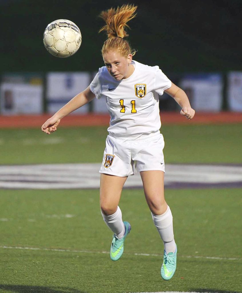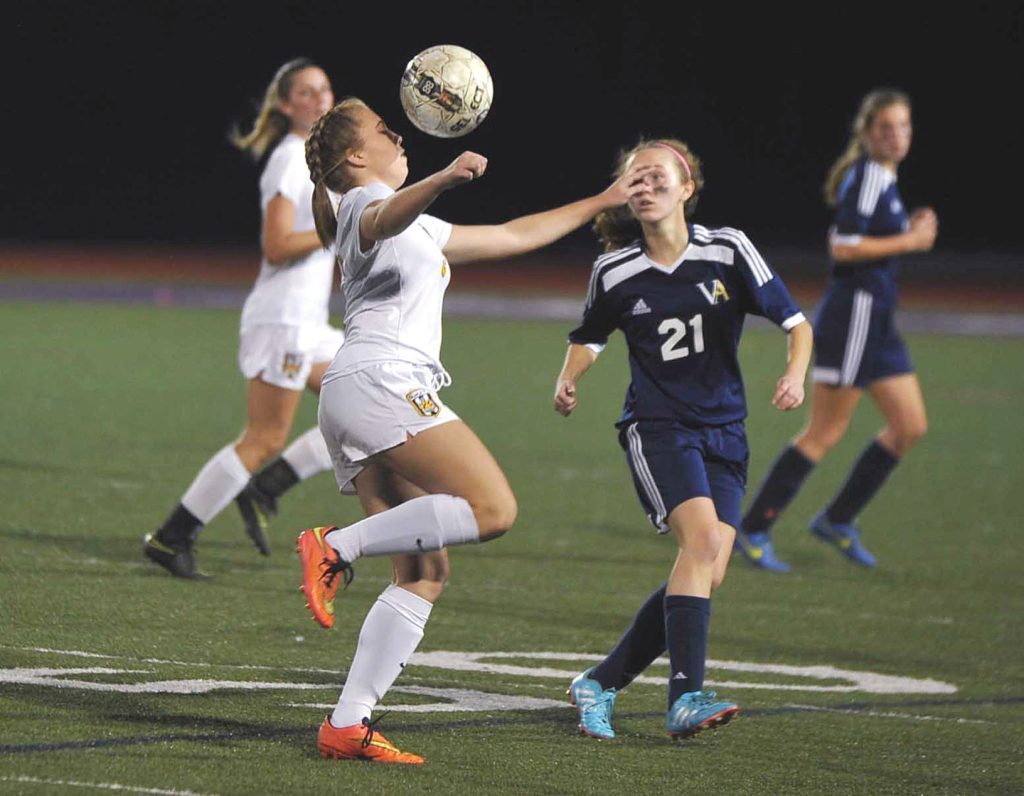 Freshman Jocelyn Timlin took a 40-yard crossing pass from freshman Paige Marshalek and beat Vincentian junior goalkeeper Ella Kozel to make the score 3-1 with 3:41 to play in the half.