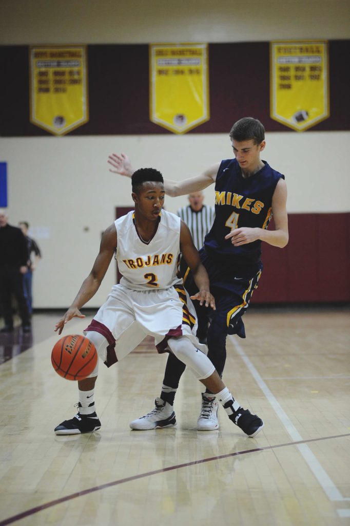 A basket by Brown pulled the Mikes within 41-27 but then the Trojans went to a full-court press that ignited an 11-2 run capped by five points from Johnny DeFranko and a jump shot and two free throws from Taylor to make it 52-29 going into the fourth period.