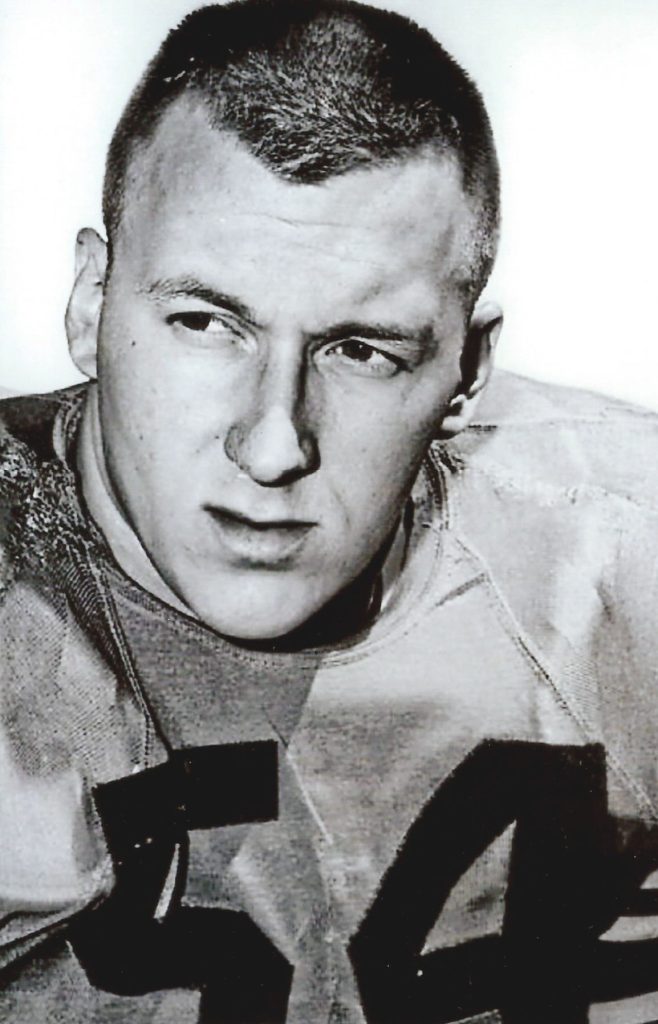He continued to shine as a junior — so much that he was named to the 1958 second team All-Big Six squad at the tackle spot. In the 1959 season his Cougars enjoyed a glistening season, winning their conference title then advancing to capture the WPIAL championship by squeaking by Aliquippa at Pitt Stadium by a 13-12 score after initially building up a 13-0 lead. The Quips stormed back with two fourth-quarter touchdowns, but they failed twice to convert on their extra point attempts. The exciting victory capped off a perfect 11-0 season.