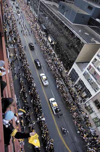 Hundreds of thousands of people then watched the Steelers and Pirates parades of the 1970s, and the Penguins of 1991 and 1992, when they partied down at the river all summer, and the Steelers in 2006 and the Steelers and Penguins in 2009. But last year’s Penguins version was the crown jewel of Pittsburgh parades, drawing an estimated 400,000 people, the largest crowd for a parade in the city.
