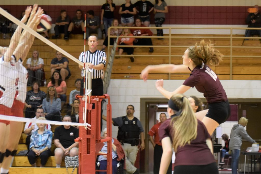 Anna Gillespie led the Lady Trojans in kills (15) and had 10 digs. Teammate Ina Helmick had 23 assists and six digs. California’s Addie O’Savage had five kills and six digs. Hanna Engle had 10 digs for the visitors. Teammates Mya Fetty (3 service points) and Lauren Watkins (5 digs) rounded out the stats.