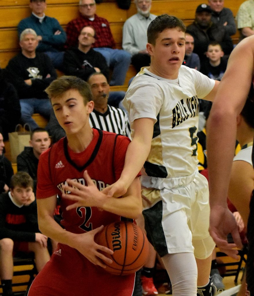 Griffin LaCarte started a 14-4 run to end the half with a pair of baskets, Matt Wobrak hit consecutive 3-pointers, Cam Nusser hit a shot and Logan Pfrogner closed the run with a layup to give Belle Vernon a 33-12 lead at the half.