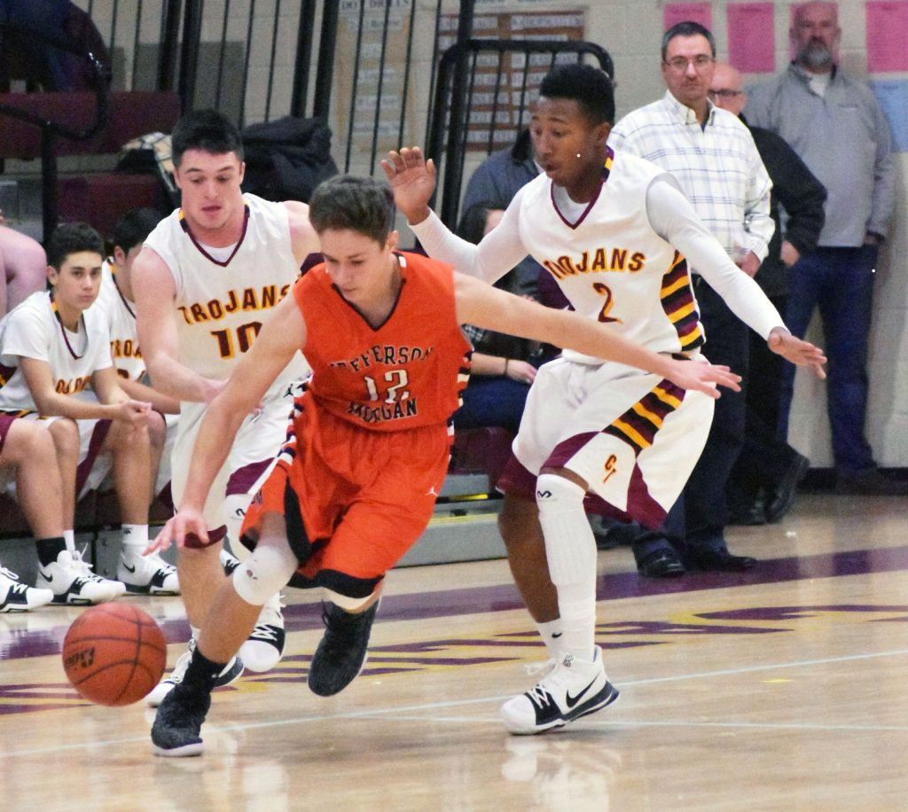 Last Friday, the Jefferson-Morgan boys’ basketball team trailed 37-18 at halftime to Section 2-AA foe California, but the Rockets regrouped to pull out a 66-63 victory for their first section win of the season.