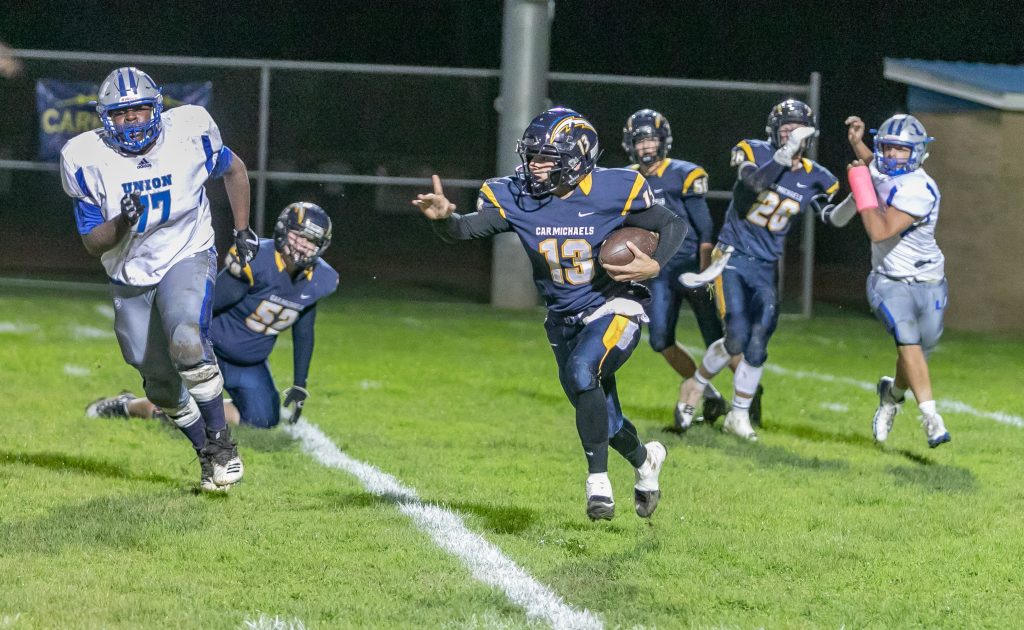 Bailey Jones’ two-point conversion run proved to be the winning points in Carmichaels’ 16-14 non-conference victory over Union on Friday at Carmichaels Area High School.
