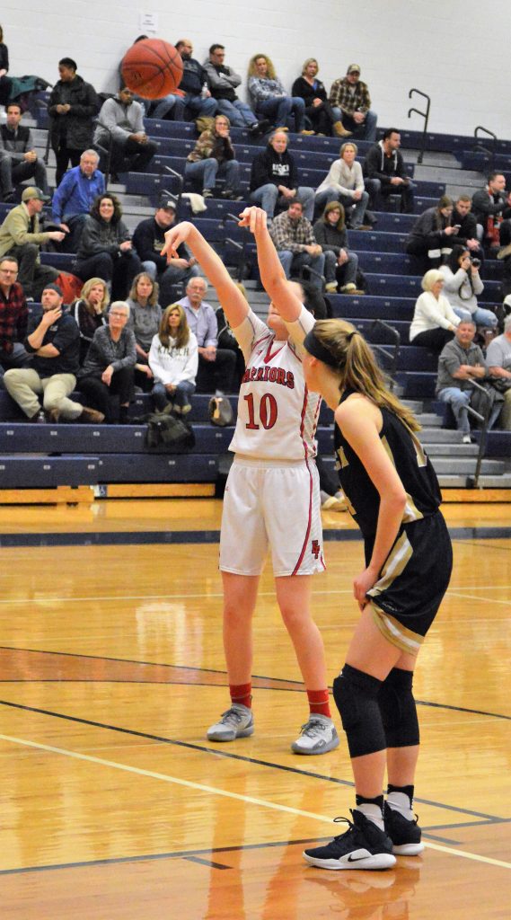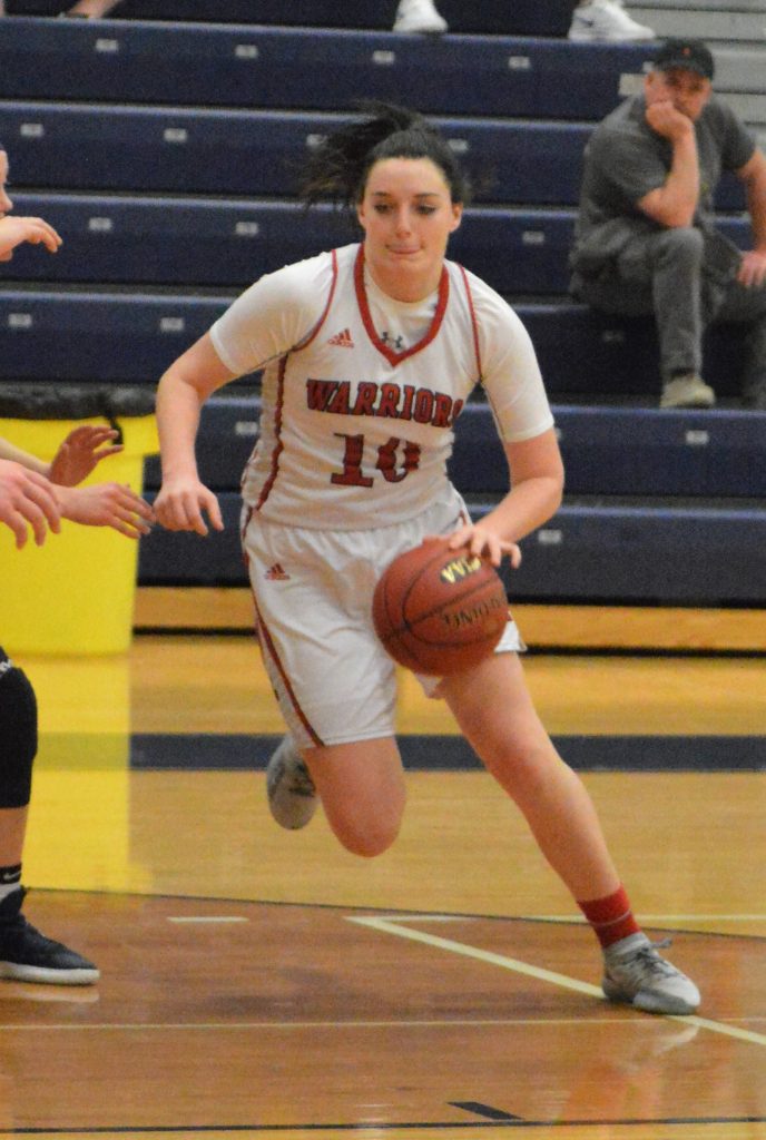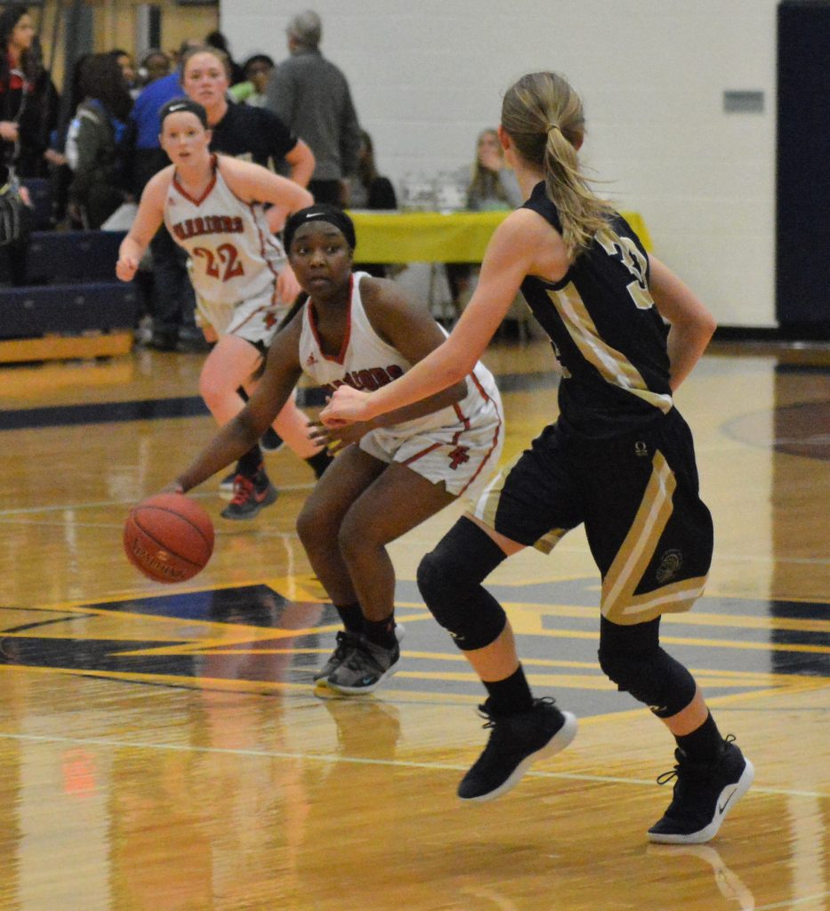 The Lady Warriors pushed their lead up to 10 twice in the second period. A lapse in the final two minutes resulted in the Lady Knights (9-14) scoring the final eight points of the half, thanks to a 3-pointer and basket by Burkett and a trey by Ewing, to pull within 31-29 by intermission.