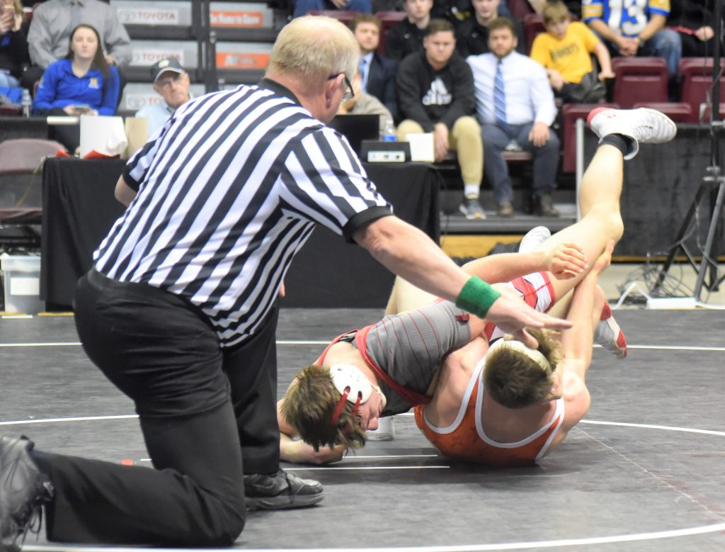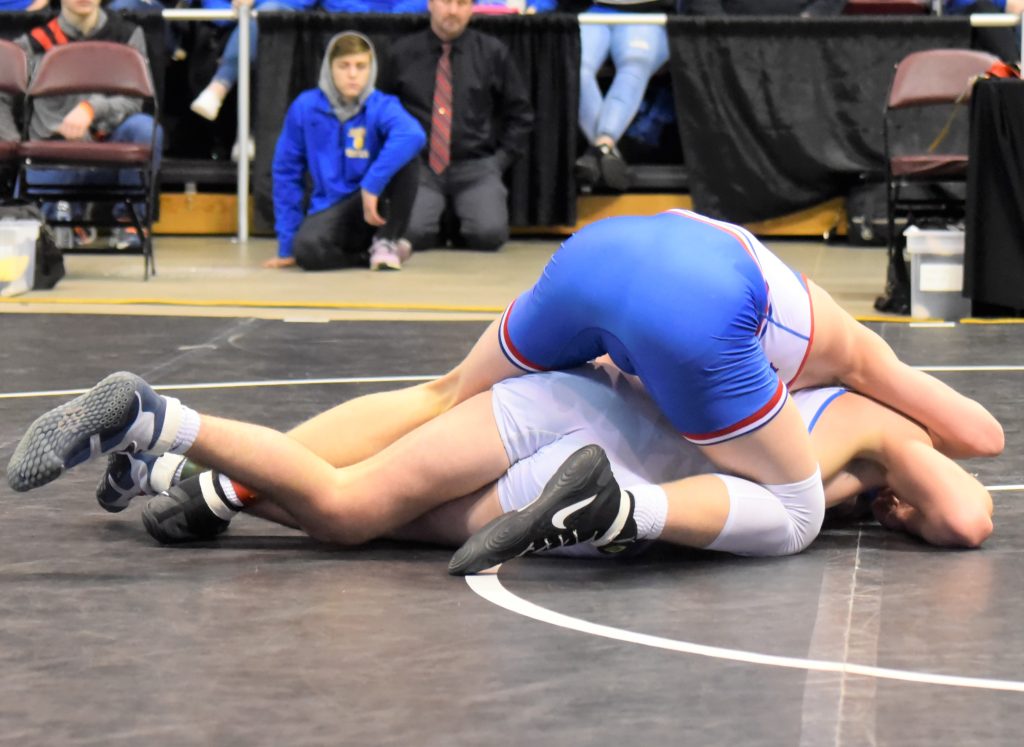 “In the beginning, he got me with the underhook, and I wasn’t expecting that, because I had been watching a lot of his matches and he hadn’t been doing that, but after I got him down, I started working on him and kept scoring points from there,” Lawrence said. “He went down first in the second, but what I do on top is what I do in the practice room every day. It is a big part of my wrestling to score points on top and I feel like I can really work on a kid from there and break him and tire him out.”