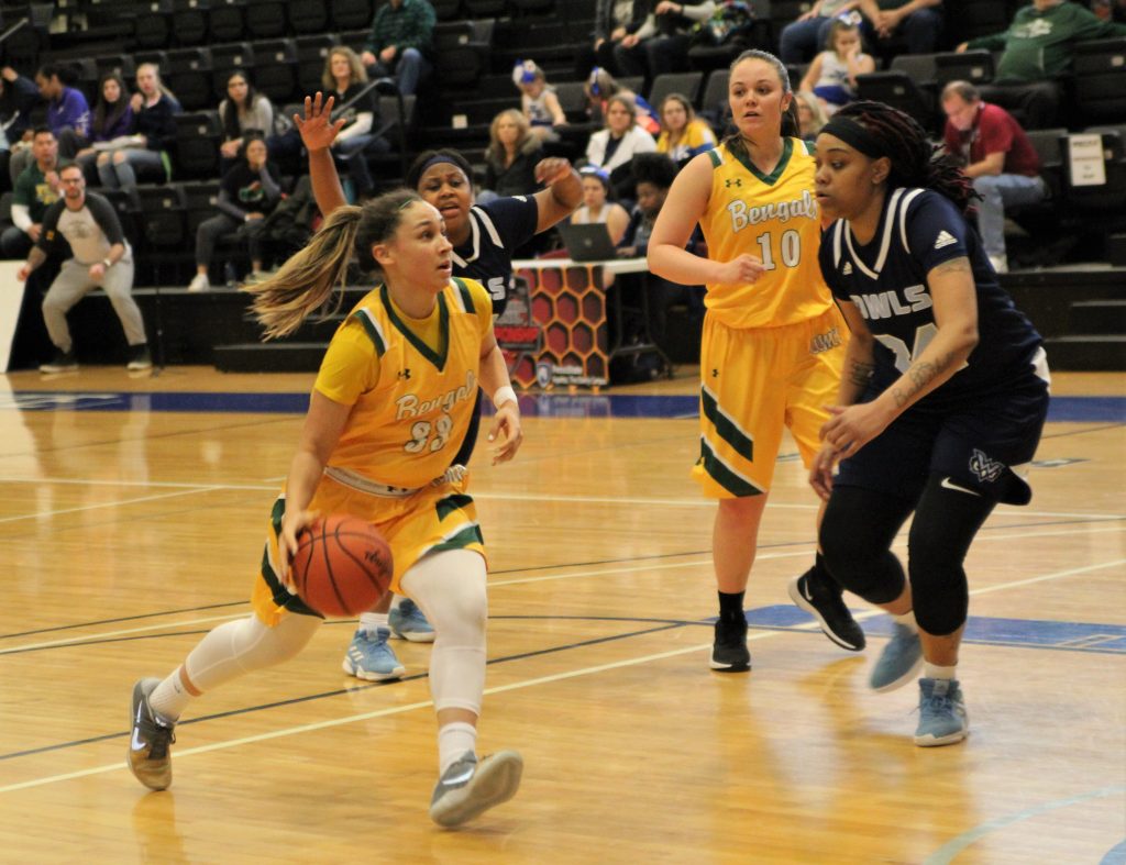 Trinity Washington had a double-double for the Bengals with 14 points and 13 rebounds. Madison Fenner finished with 12 points and Micayela Hernandez added 11.