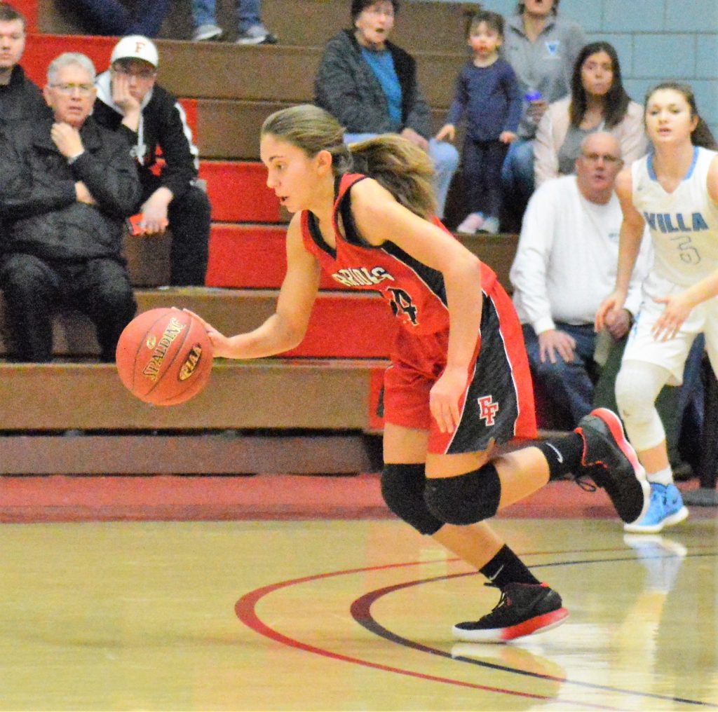 Jenkins’ 3-pointer tied it, 31-31, with four minutes left in the third and Spirnak’s basket gave EF its first lead, 33-31, with 3:09. Hannah Kelly’s 3-pointer and a bucket by Ava Waid put Villa Maria up 36-33.