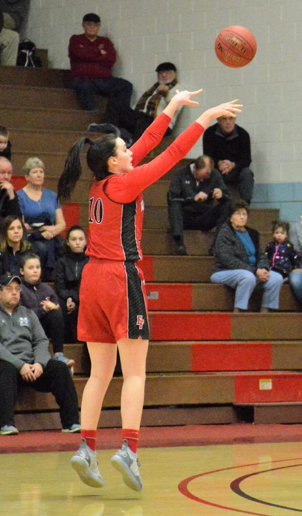 Undaunted, the Lady Warriors fired right back with a nine-point run sparked by Resnick, who sank a 3-pointer and three of four foul shots, and capped by Spirnak’s 3-pointer to make it 24-21.
