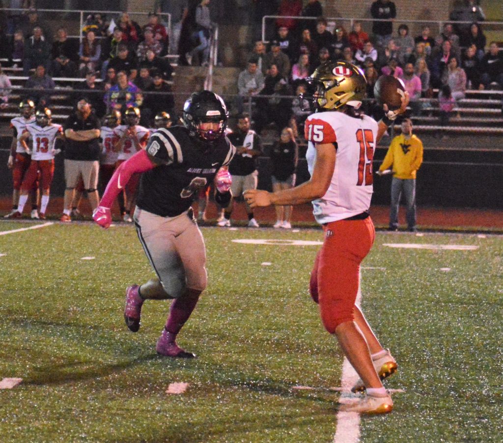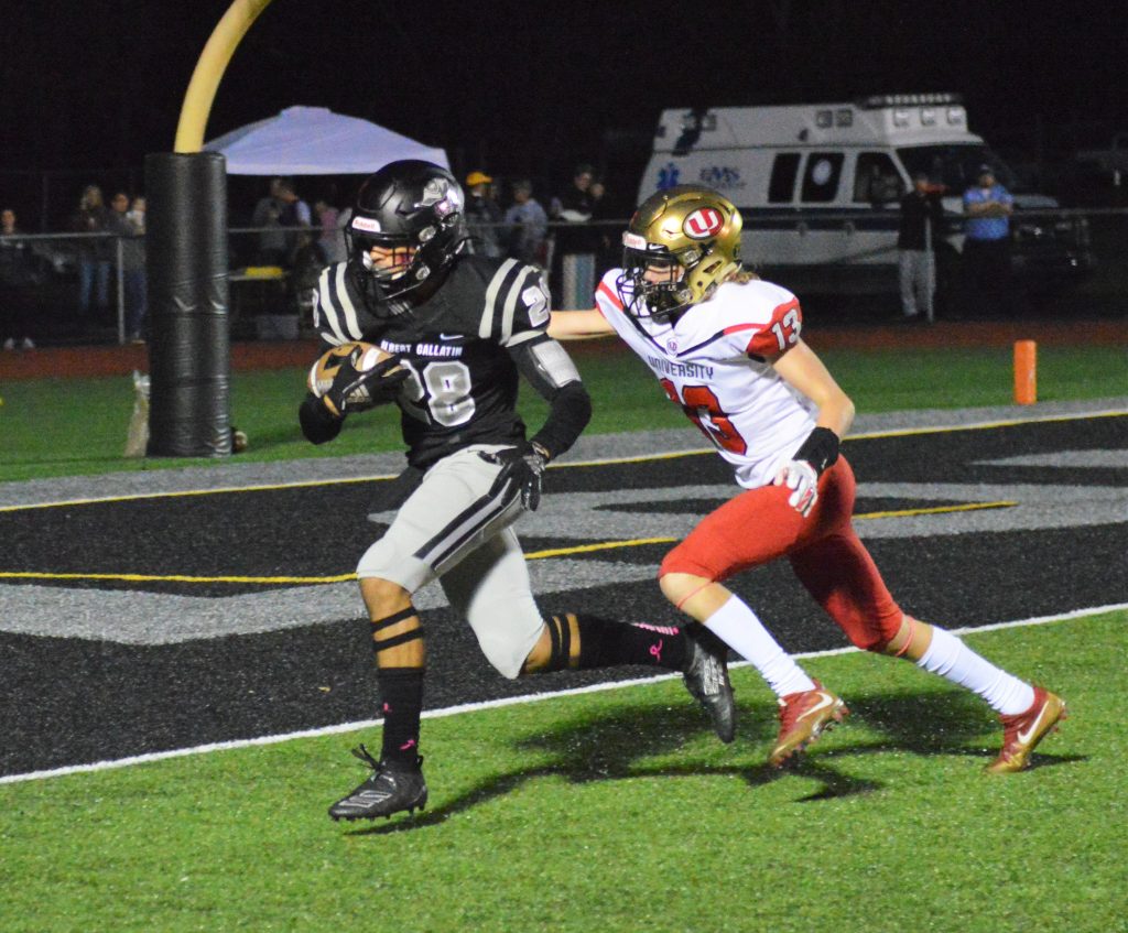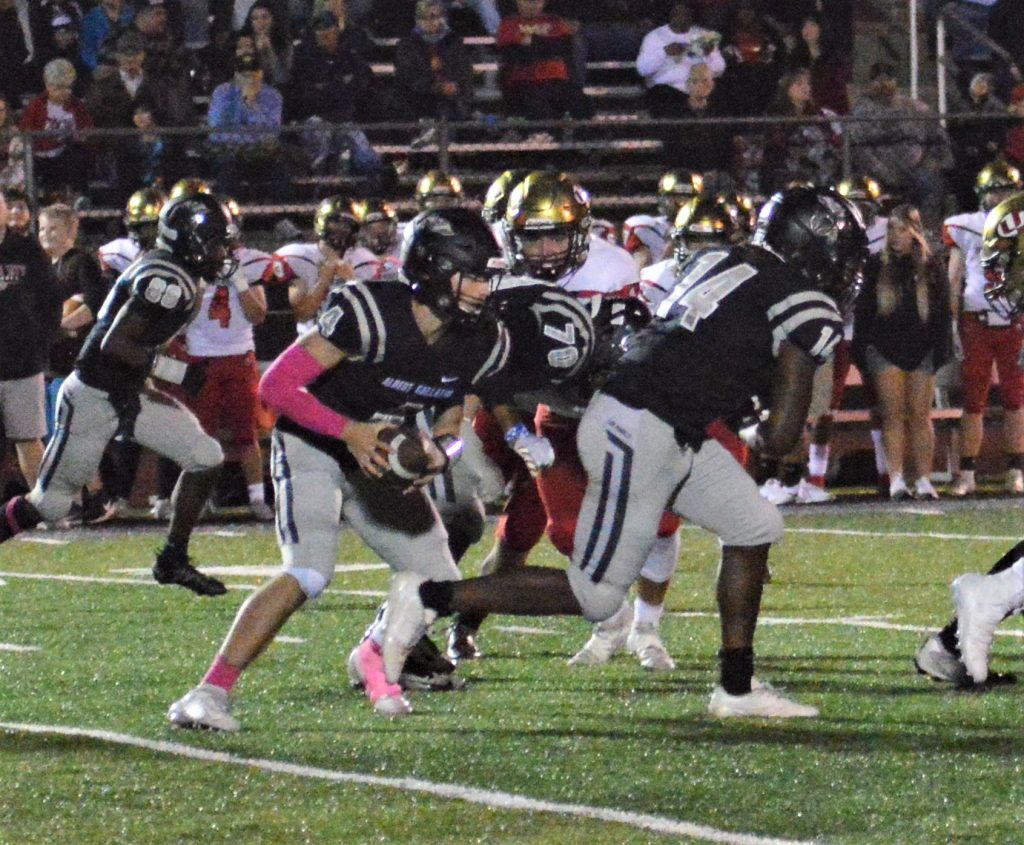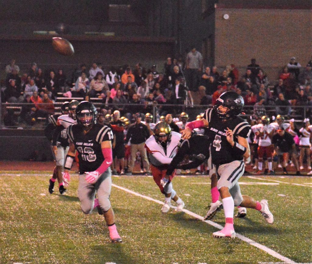 Albert Gallatin’s defense rang up four sacks and an interception in a strong effort. Dylan Shea and Brady Shore halved one sack, and Shea came up with another, as did Shawn Loring and Braxton Turner. Antonio Efford made the interception at the AG 3 on a fourth-down pass by Joseph McGee early in the third quarter.