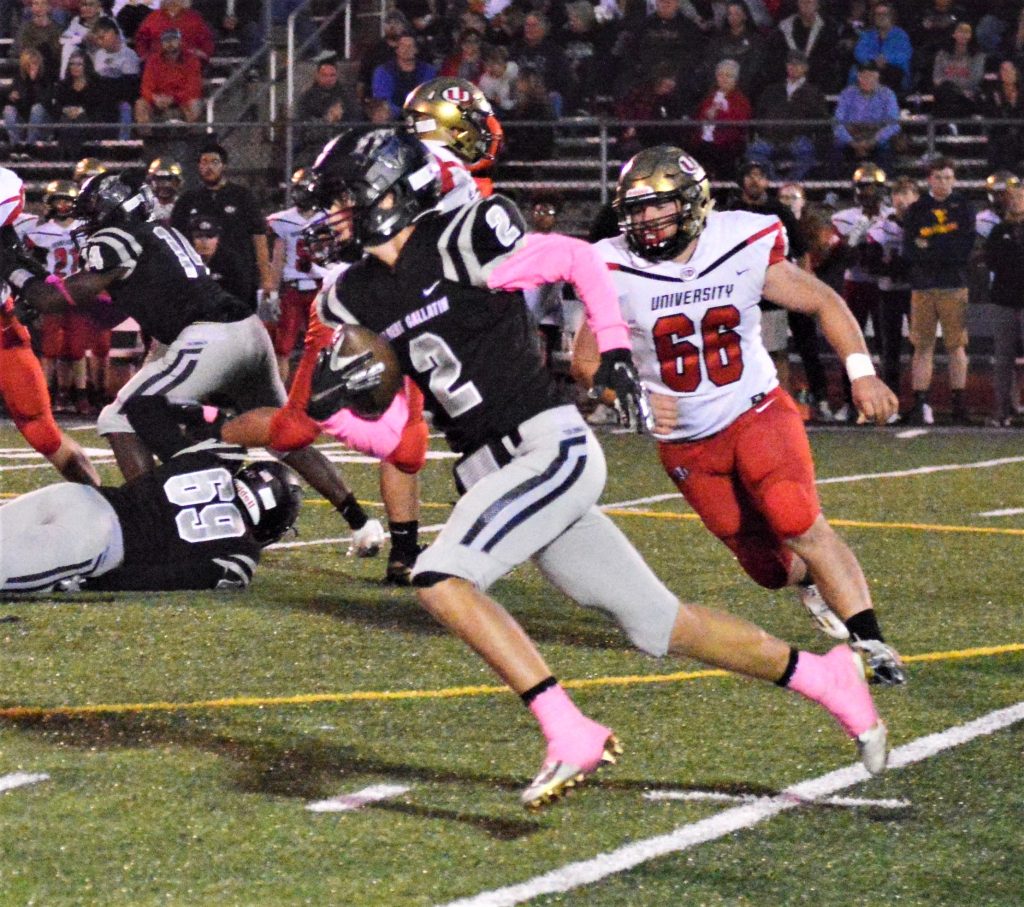 The outcome came down to a two-point conversion try by University High (2-4) following a 12-play, 88-yard touchdown drive after recovering an AG fumble. Hawks quarterback Chase Edwards completed a 21-yard TD pass to Andrew Myers, who was covered well on the play, with 1:41 left in the game and coach John W. Kelley opted to go for the win.