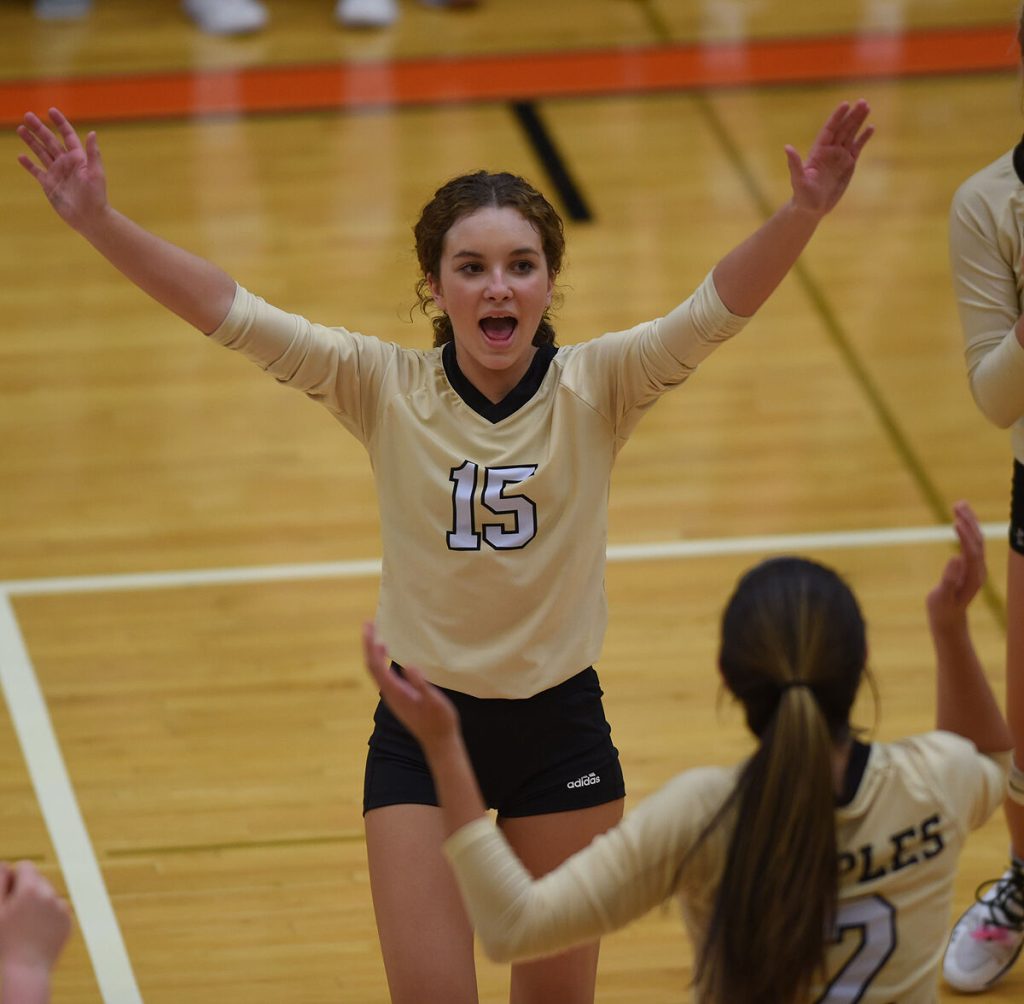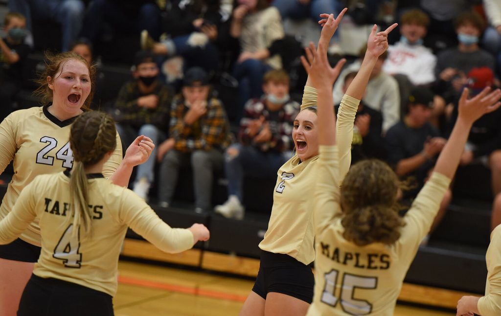 In the third set against Apollo-Ridge, Mapletown trailed 7-2 before Taylor Dusenberry served up 11 consecutive winners, giving Mapletown a 14-7 lead that eventually turned into a 25-15 victory.
