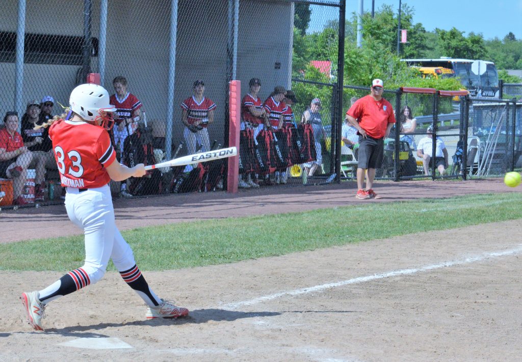 “Victoria banged her ankle up real bad last week in practice and she’s hobbling and it was great to see her get a big hit right there and get us going,” coach Hartman said of his lone senior. “She’s going to be missed. She’s been outstanding for me for four years.”