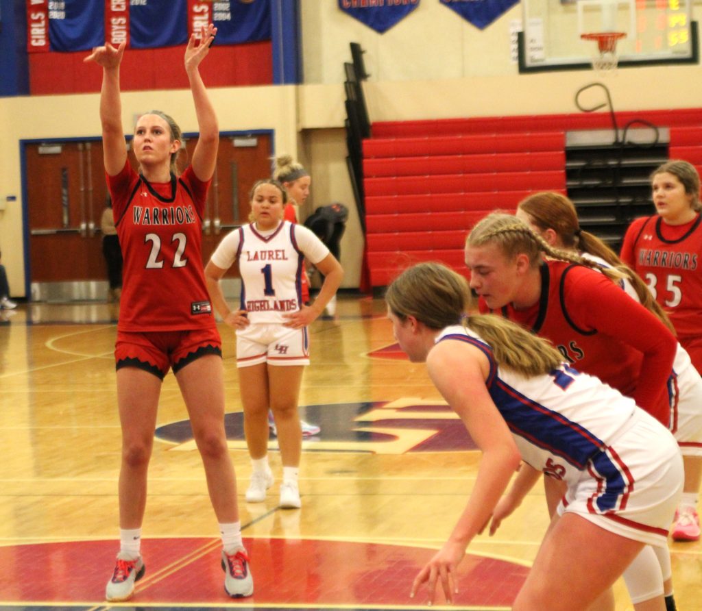 Both teams were saddled with foul trouble. Laurel Highlands’ Taylor Irwin and the Lady Warriors’ Kaelynn Settles and Michelle Jellison fouled out.