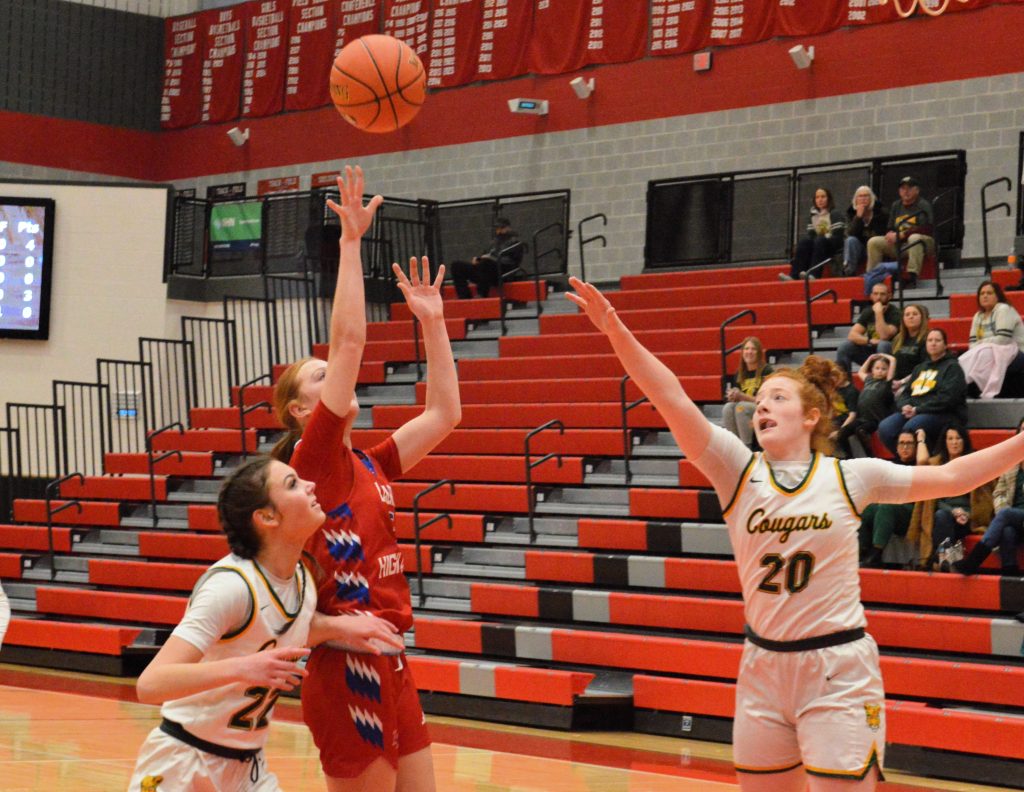 The Lady Cougars got consecutive 3-pointers from Sheesley and Kinger to open the second half, then answered a basket by Sumpter with buckets by Hupp and Kinger to go up 34-23, prompting Davis to call a timeout midway through the quarter.