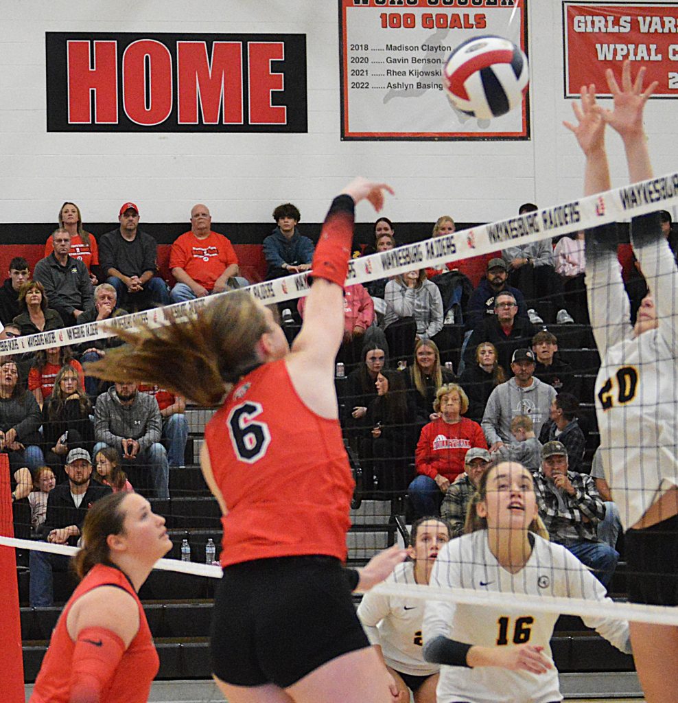 Ani Cree contributed 12 kills and six digs and Railey Bochna also had 12 kills with five digs for Waynesburg, which also got eight kills and four digs from Emily Rafferty and six kills and two aces from Harper Grimes.