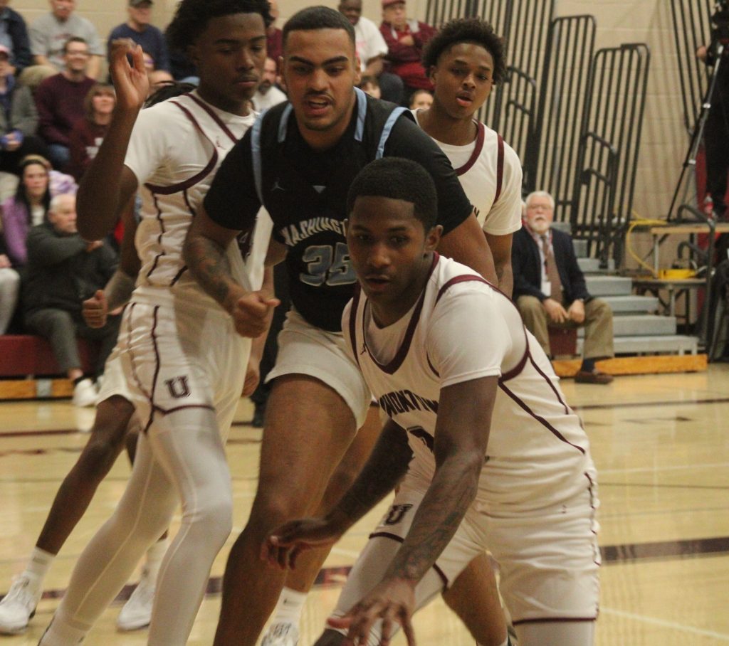 The Red Raiders had a 14-4 lead with 3:12 left in the first quarter, and Notorious Grooms led the way with 3 three-pointers for nine of his game-high 27 points. Grooms had seven of Uniontown’s 12 three-pointers, and also made three two-point field goals.