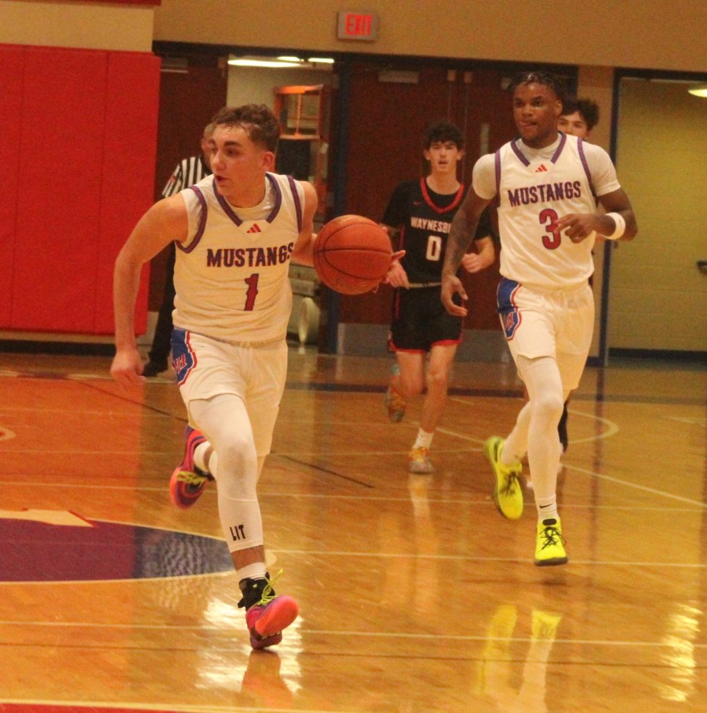 The Mustangs scored their first basket in transition on Aiden Black’s layup and had a 22-4 lead after the first quarter. Laurel Highlands benefited from multiple second-chance opportunities and Black scored 11 of his game-high 18 points in the opening period.