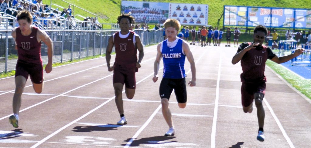 The Red Raiders’ Steele Stash won the 200-meter dash in 23.58 and was the first leg on Uniontown’s 400-relay team that crossed the finish line first in 45.44. Stash had an identical time in the 100 as teammate Zyon Hopes, with both reaching the finish line in 11.57, but Hopes broke the “tape” first.
