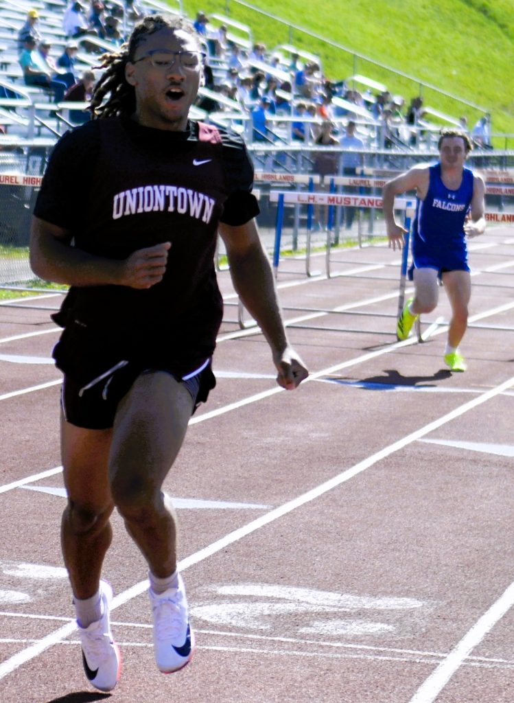 Stephen Chapley provided Uniontown with five team points in winning the 400 with a time of 54.17. Chapley, a junior, is the defending Fayette County Coaches Association (FCCA) champion in the event after finishing in 52.37 last year while competing for Calvary Chapel Christian School.