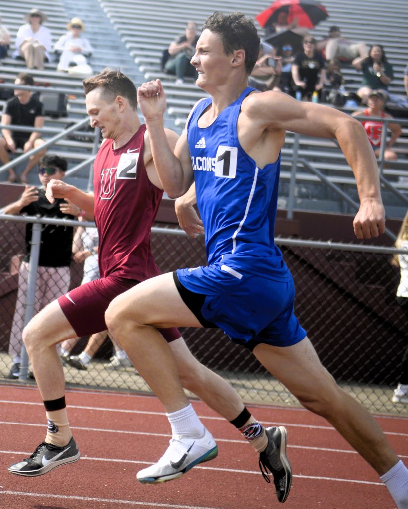 When Pritts began his push on the bell lap in the 1,600, the Falcon sophomore started to distance himself from Syner, but the 2025 FCCA boys cross country champion found an extra gear, as he and Pritts went elbow-to-elbow for position down the final 100 towards the finish line.