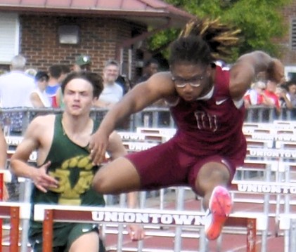 Uniontown’s Zyon Hopes cleared 6-0 to win the high jump. Hopes’ height was a PR. He finished second in the 100-meter dash to Brownsville’s Levi Grogan, who won the race in a PR of 11.19. Hopes set his PR in the 100, too, with a time of 11.41.