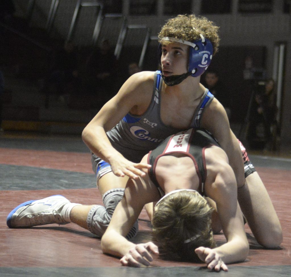 Connellsville entered Tuesday’s dual meet having defeated Gettysburg, 41-20, on Jan. 10 in the Gettysburg Duals, but the Falcons were without Jeremy Gray at 107. Gray was injured when the teams met in January, but the freshman was ready to roll on Tuesday and earned a fall in 4:18.