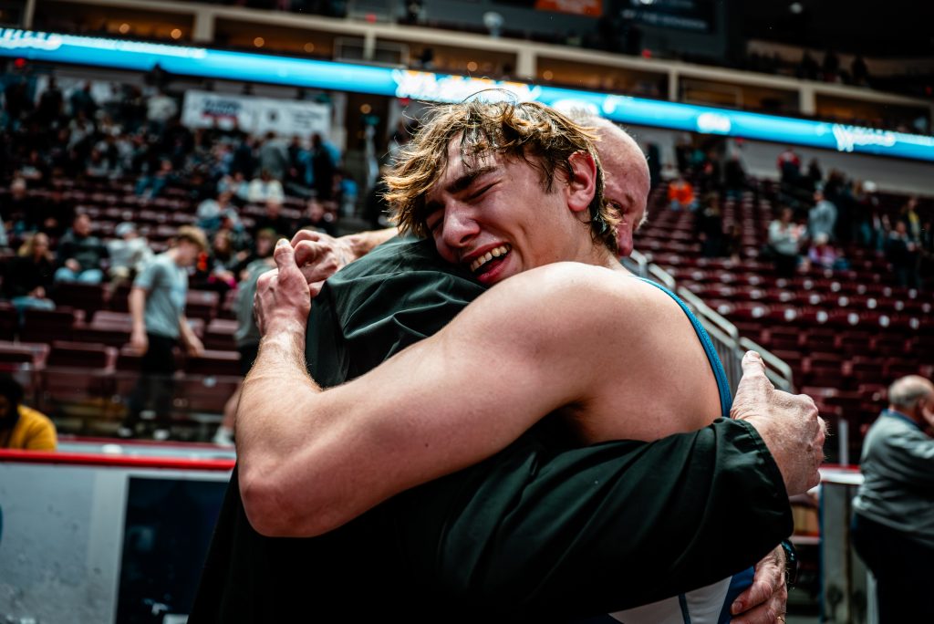 There are always unique celebrations at the state tournament, especially in the finals, and while Vielma was excited and let out a huge roar while pointing to his supporters in the stands, he didn’t perform a flip or tackle anyone on his coaching staff, but he did make sure to go into the crowd and see his family.