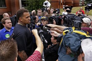 LATROBE — They arrived on a dreary Thursday afternoon to Saint Vincent College by sports car and SUV, televisions, pillows and computers stuffed under their arms. The rain offered a slight respite from the media horde which gathered outside Rooney Hall.There were no literal targets on their ...