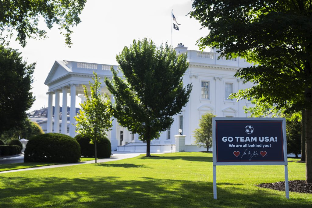 Back home in the United States, a sign was erected on the North Lawn of the White House that said “Go Team USA! We are all behind you.”
