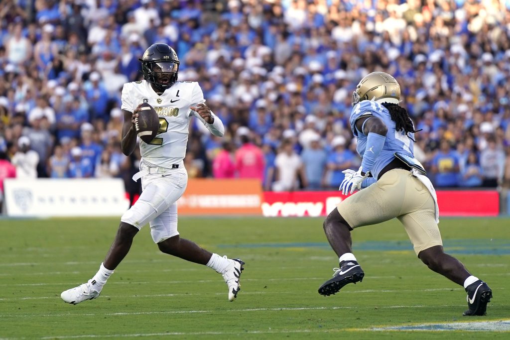 Colorado quarterback Shedeur Sanders is climbing up the program’s record books. His 22 touchdown passes are tied for the second-most in a single season in team history, trailing only Sefo Liufau’s 28 TD tosses in 2014. Sanders has thrown for 2,637 yards and is on pace to eclipse Liufau’s single-season mark of 3,200 yards (2014).
