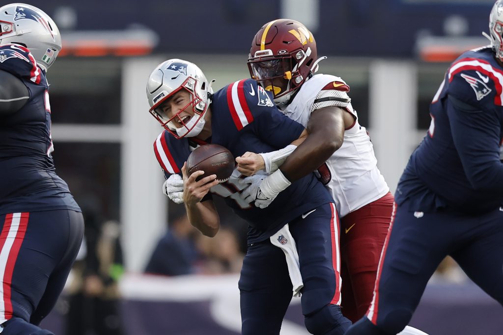 But New England also hurt itself with mental mistakes, most notably defensive lineman Mack Wilson lining up offside on a punt by Washington. The penalty gave the Commanders the ball back; although they didn’t advance, they forced New England to burn off its last two timeouts before getting the ball back with 2:07 to play.