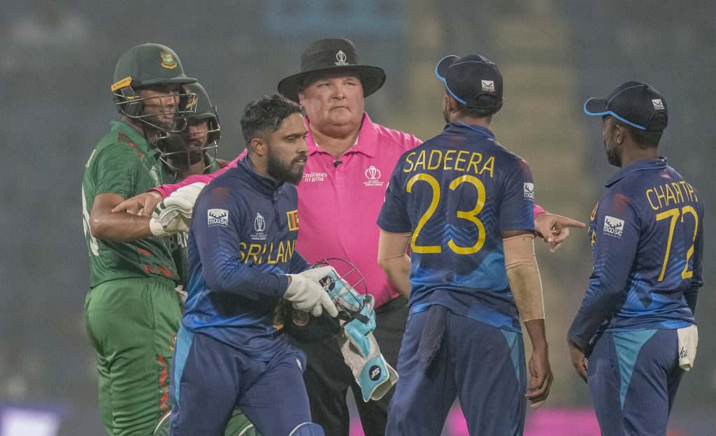 NEW DELHI (AP) — Sri Lanka was eliminated from World Cup semifinal contention by Bangladesh and Angelo Mathews became the first batter to be timed out in international cricket on Monday.