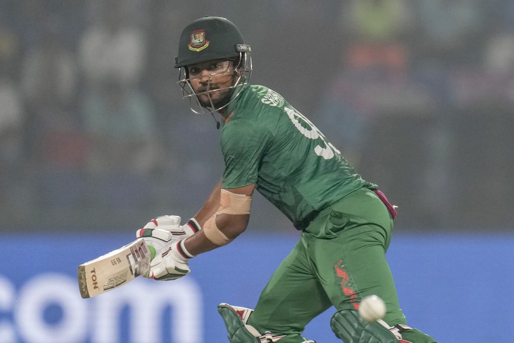 Shanto hit 12 fours in his 101-ball knock before he was clean bowled by Matthews. Shanto made an unbeaten 59 in Bangladesh’s opening win against Afghanistan but followed with only 28 runs across the next six games.