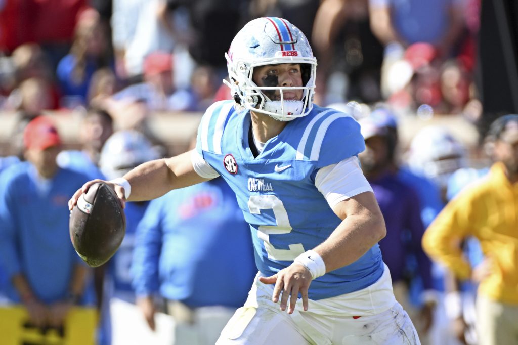 Mississippi: QB Jaxson Dart is a dual-threat player who can make big plays with his legs and his arm. He has passed for 2,467 yards and 16 scores, with just four interceptions, to along with 334 yards and seven touchdowns rushing. Dart ranks seventh nationally in passing yards per completion (15.6) and is surrounded by an array of playmakers, including RB Quinshon Judkins and WR Tre Harris.