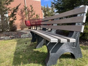 It may look like a typical bench, but the gray bench located near the pollinator garden at Peters Township Library is anything but. The 185-pound bench is made from recycled caps. “When you open up a refrigerator door, you have ketchup, relish, mustard bottles with caps. ...
