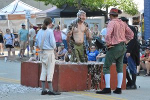What separated the Pennsylvania farmers brewing a rebellion over a pint at the Black Bear Tavern from the actors reenacting their arguments on Main Street in Washington Saturday?