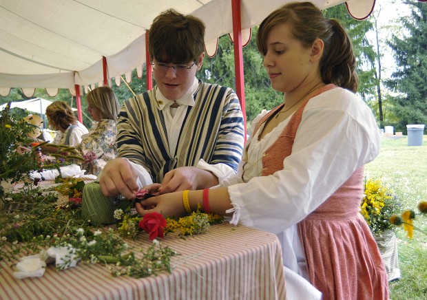 They include Susan Rex, spinning yarn wool; Lisa Kardel, paper quilts; Peggy Nixon, slate painting, Cheryl Peers and Olive D’Isidoro, quilting; Donna Cocalis, braided rugs and chair pads; Allie Marguccio, bobbin lace; Tom Marguccio, bobbin turning; David and Laurie Stewart, spinning, weaving, knitting and crocheting; Barbara Bailey, clay buttons; Pat Anderson, basketmaker; Mary O’Rourke, head garlands; Bobbi Kramer, old-fashioned soap; Emma Sines, dolls and clothes; Paul Claus and Marsh Truax, jackware; and Paul Ruane, stained glass.