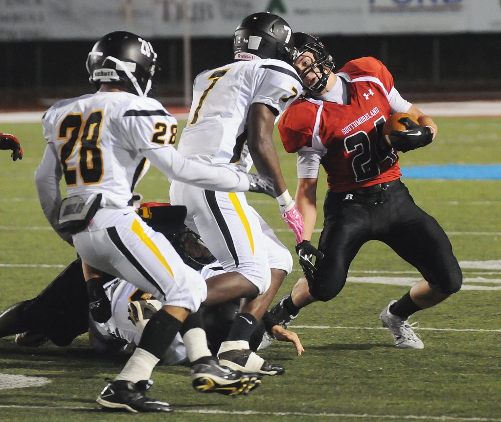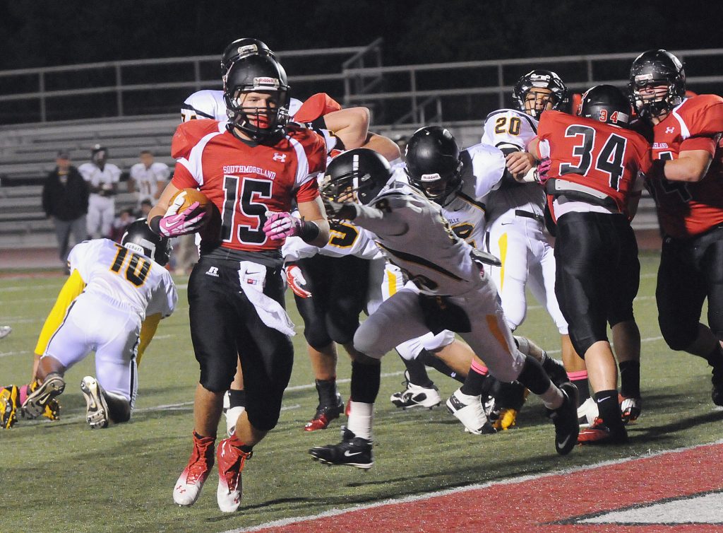 But Southmoreland’s defense stiffened, driving the Falcons back to the 18-yard line before taking over on downs.