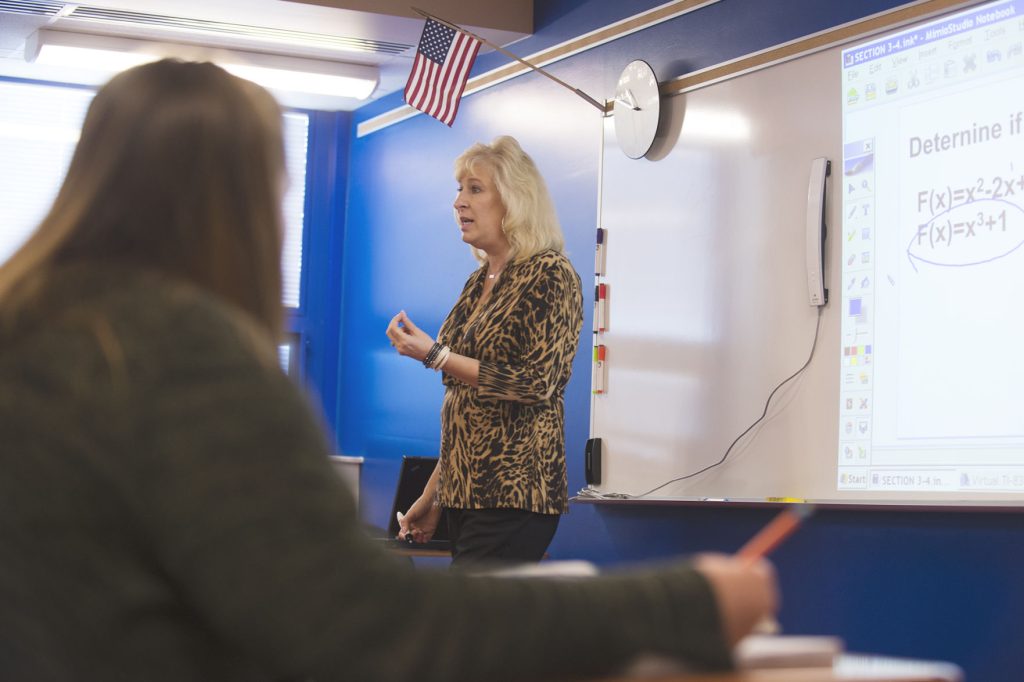 For the last 15 years, Iacconi has taught honors algebra II and honors trigonometry/pre-calculus courses. With energy, she gives the same lecture multiple times a day, working to instill critical thinking skills in her students.