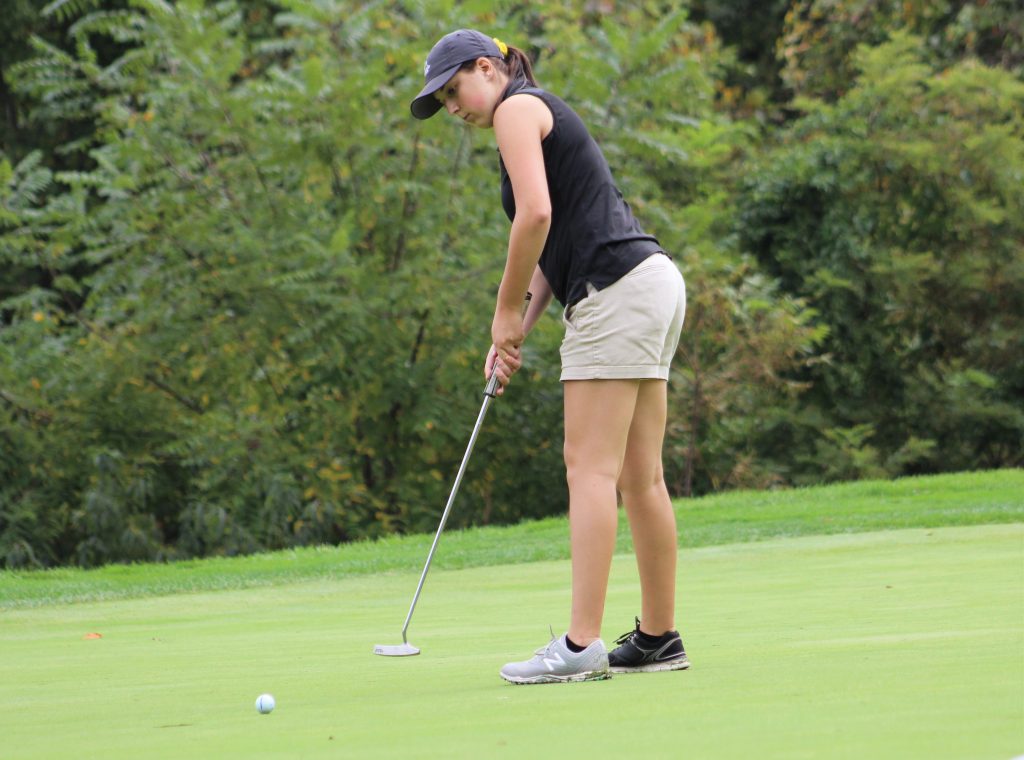 Adena Rugola, a freshman, finished second to her sister in the girls county golf championship, and nearly qualified for the boys WPIAL Class AA Championship in the Section 8-AA qualifier.