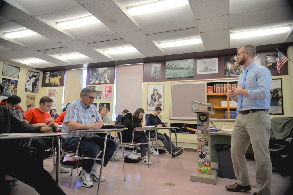 Becoming students for a day, five corporate leaders each shadowed a student at Frazier, participating alongside the teens in classes such as AP Calculus, aerospace engineering, English, family consumer science and phys. ed.