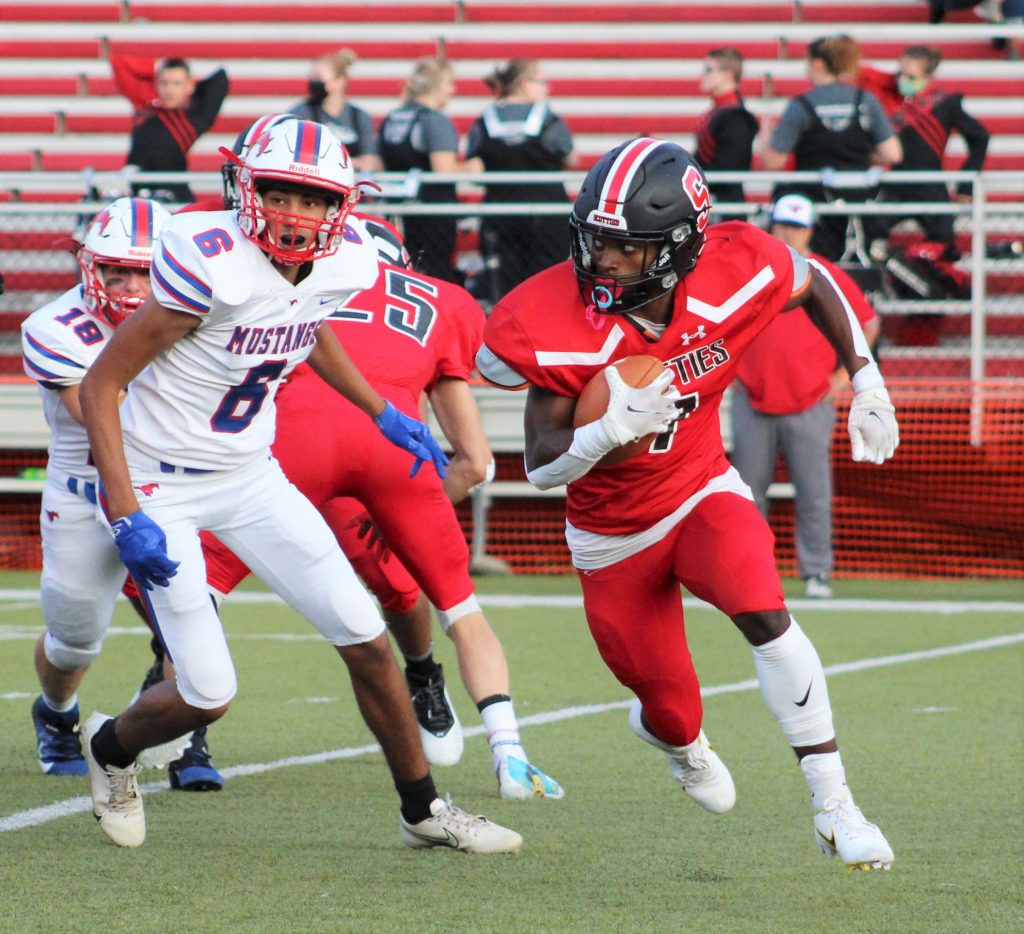 The 43-yard scoring run reversed the fortunes of the Mustangs in a matter of a couple minutes after the visitors fumbled at the goal line with 10:54 left in the game and the score tied at 21.