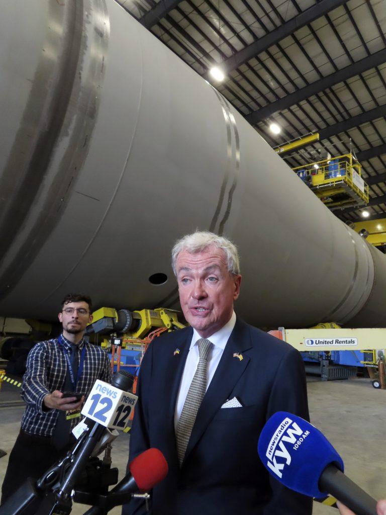 “If we don’t figure out a solution, this doesn’t get done in New Jersey,” Murphy said after the ceremony at the Paulsboro Marine Terminal, where the huge supporting structures for wind turbines, called monopiles, are manufactured. “We know war in Europe, inflation, supply chain — these projects have gotten a lot more expensive, and we’re not the only place that’s dealing with that. Either we get this bill done and the industry thrives here, and the jobs that are associated with it, or it goes somewhere else.”