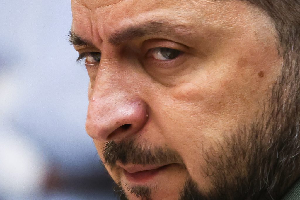 Ukraine's President Volodymyr Zelenskyy waits for the start of a bilateral meeting with Germany's Chancellor Olaf Scholz during a NATO summit in Vilnius, Lithuania, Wednesday, July 12, 2023.
