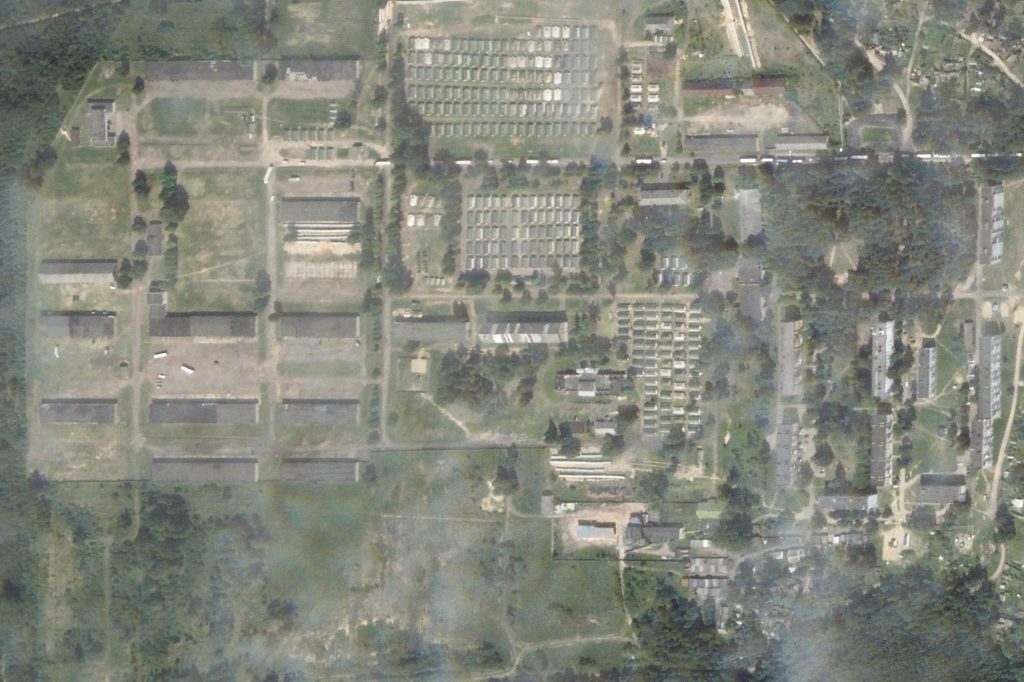 The photos, taken Monday, show a long line of vehicles coming off a highway into the base near the Belarusian town of Osipovichi, some 75 kilometers (45 miles) northwest of the capital, Minsk.