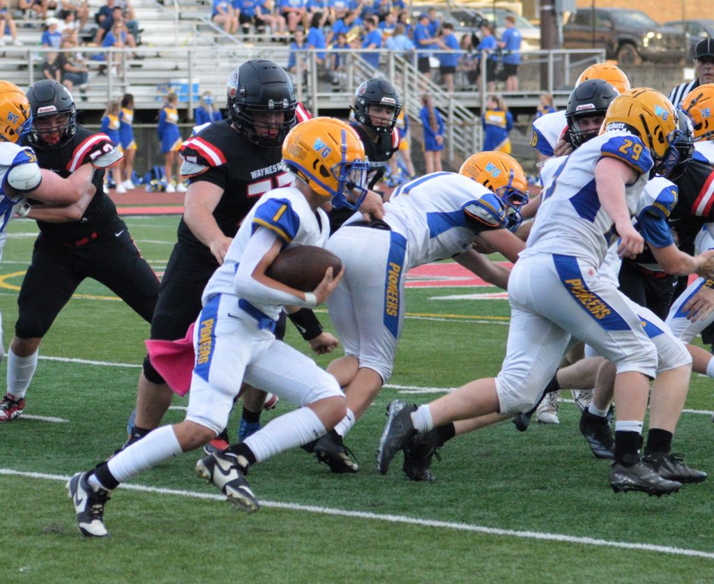 The Pioneers converted a short fourth-down play with a plunge by freshman quarterback Joel Rizor on their opening drive and attempted another fourth-down play soon after but a high snap gave the Raiders the ball at West Greene 17.